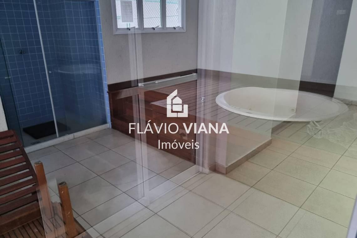 Este excelente apartamento possui sala espaçosa com mesa de vidro, 5 cadeiras, sofá e ventilador de teto....