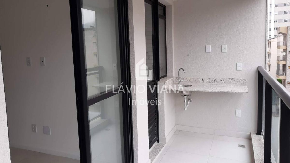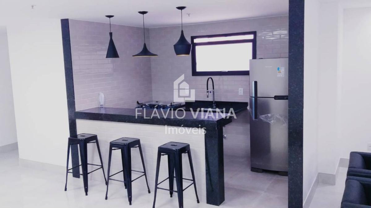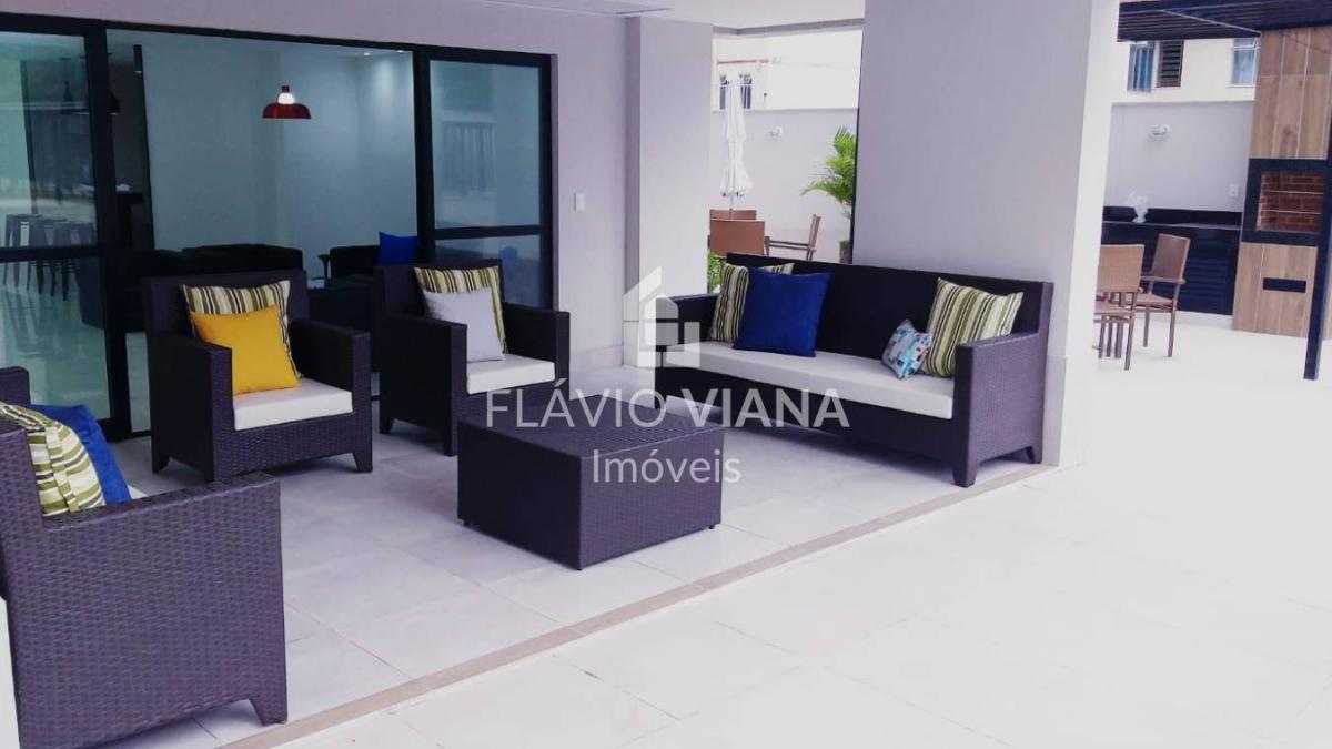 Excelente apartamento de 2 quartos, suíte, banheiro social, sala em dois ambientes, cozinha integrada à sala, área de serviço e varanda com bancada gourmet.