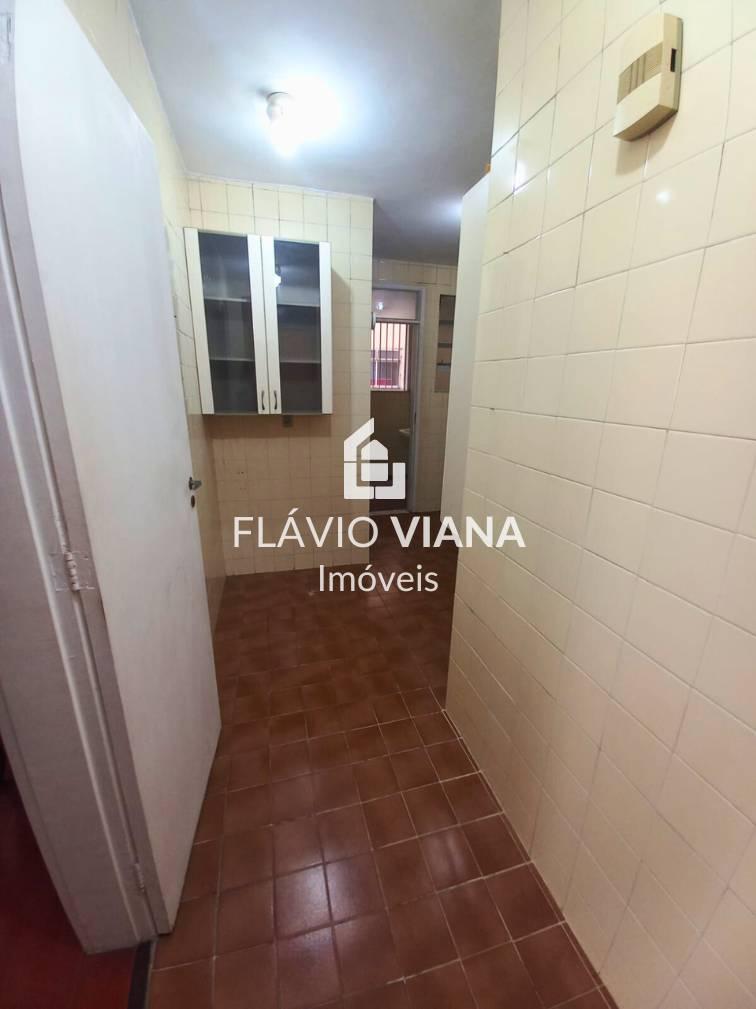 O imóvel possui 2 quartos com armários, 2 banheiros, cozinha ampla e uma área de serviço integrada. Além disso, conta com uma dependência de empregada e 1 vaga de garagem.