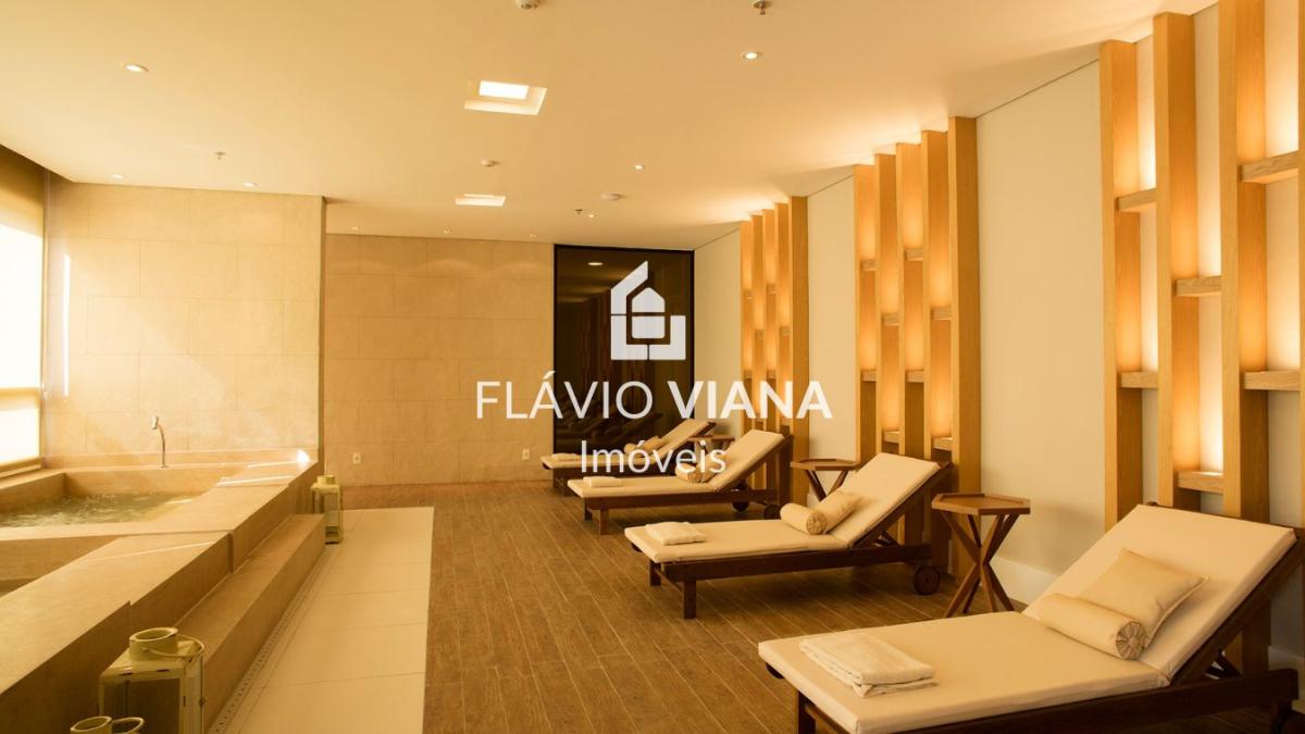 - Varandão com área gourmet, cortina de vidro e vista para a lagoa.
