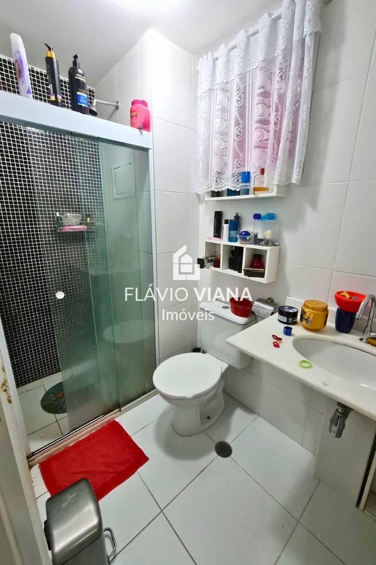 3 quartos e 2 banheiros, sendo 1 suíte com 2 banheiros com blindex.