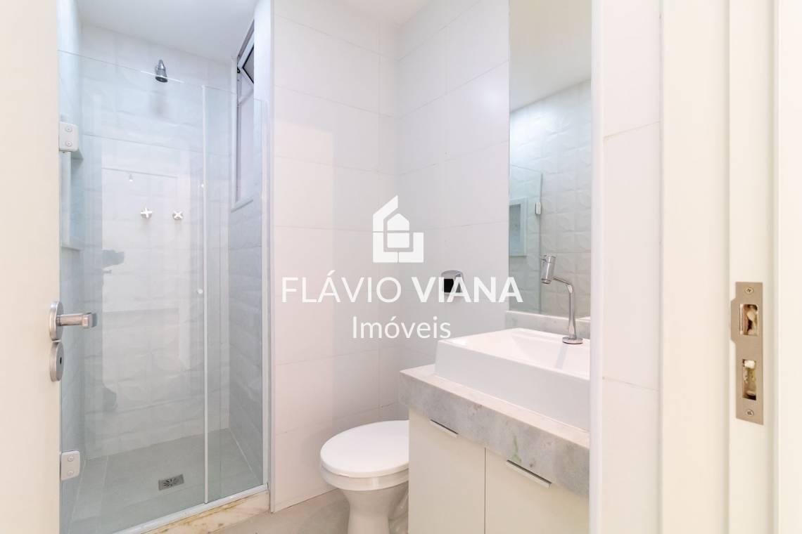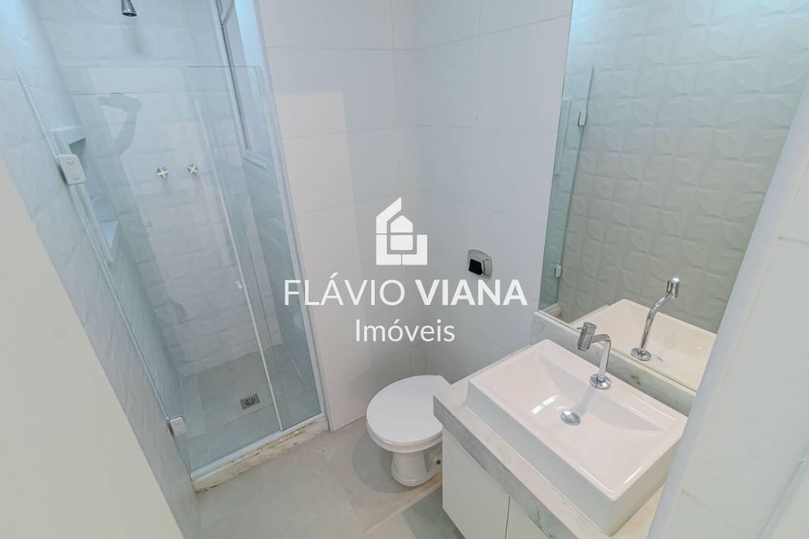 Localizado a 2 quadras da praia, reformado, mobiliado, com varanda e vista mar, este é o 3 quartos com suíte que você buscava em Copacabana.