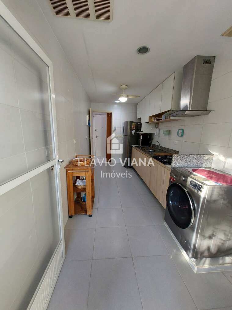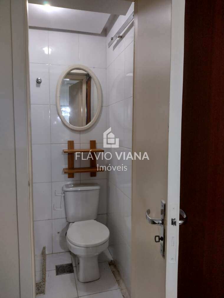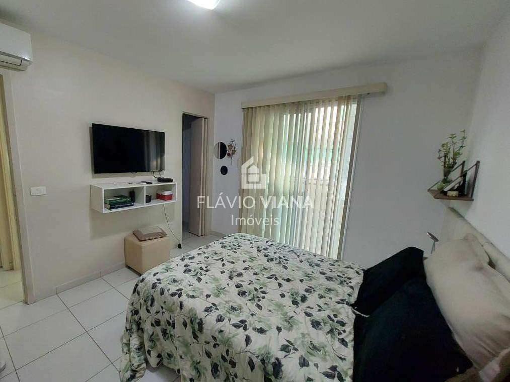 A cozinha é funcional e bem planejada, com armários de ótima qualidade. O imóvel ainda conta com banheiro social, lavabo e sistema de ar-condicionado split já instalado na sala e nos quartos.