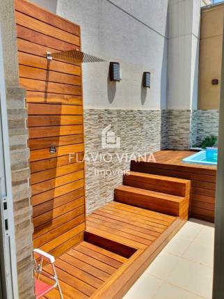 O destaque fica por conta do pavimento superior: uma área de lazer completa com deck, piscina e um espaço gourmet perfeito para receber amigos e familiares.